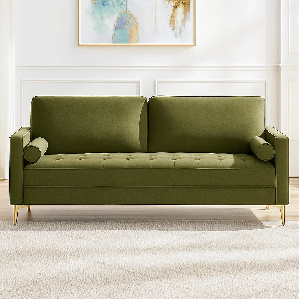 Canapés 192 x 79 x 85 cm vert olive 3 places en velours et bois massif