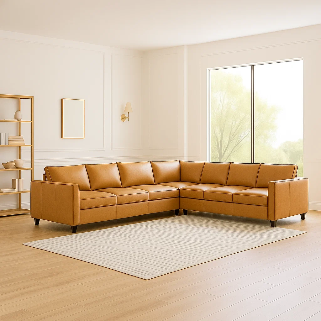 Ensemble de salon 2 pièces 7 places caramel en similicuir avec modules d’assise assortis