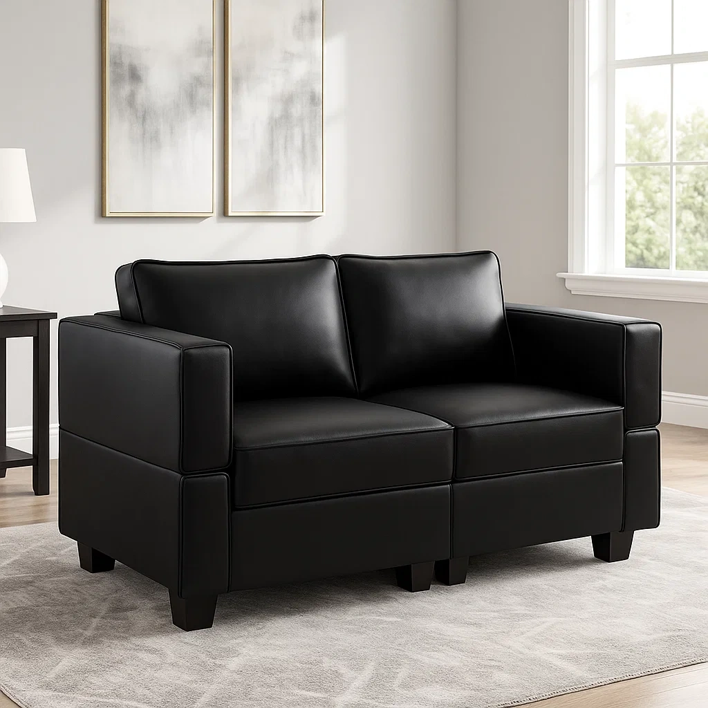 Canapé deux places modulable 155 x 78 x 88 cm noir en tissu et bois