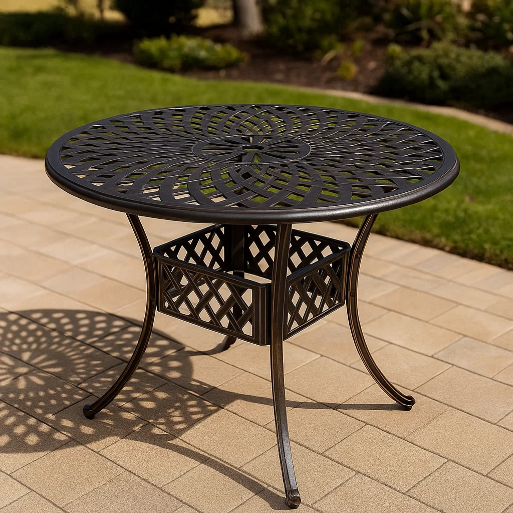Table bistro d'extérieur ronde 106.7 x 106.7 x 71.9 cm noir aluminium moulé avec trou pour parasol